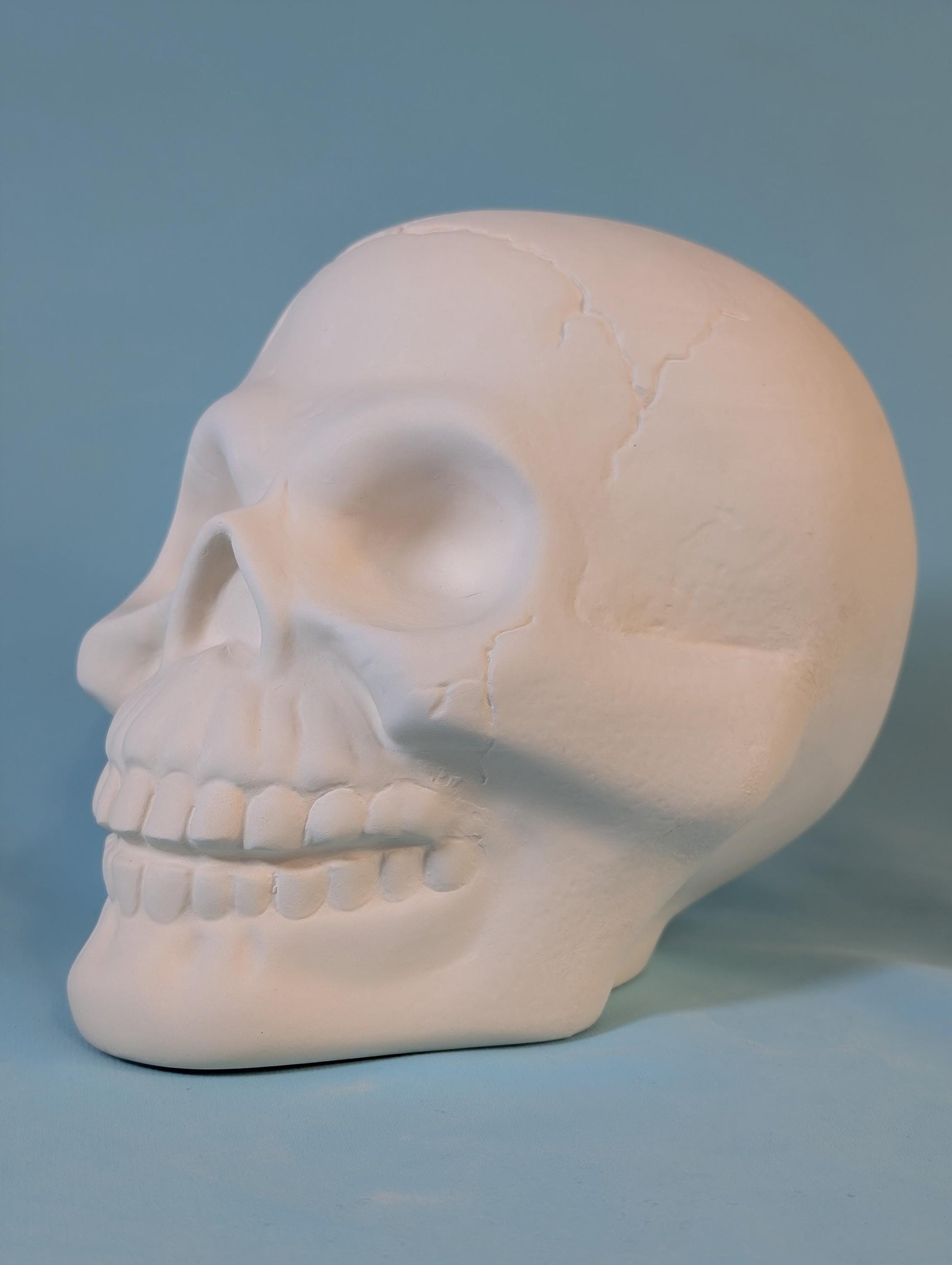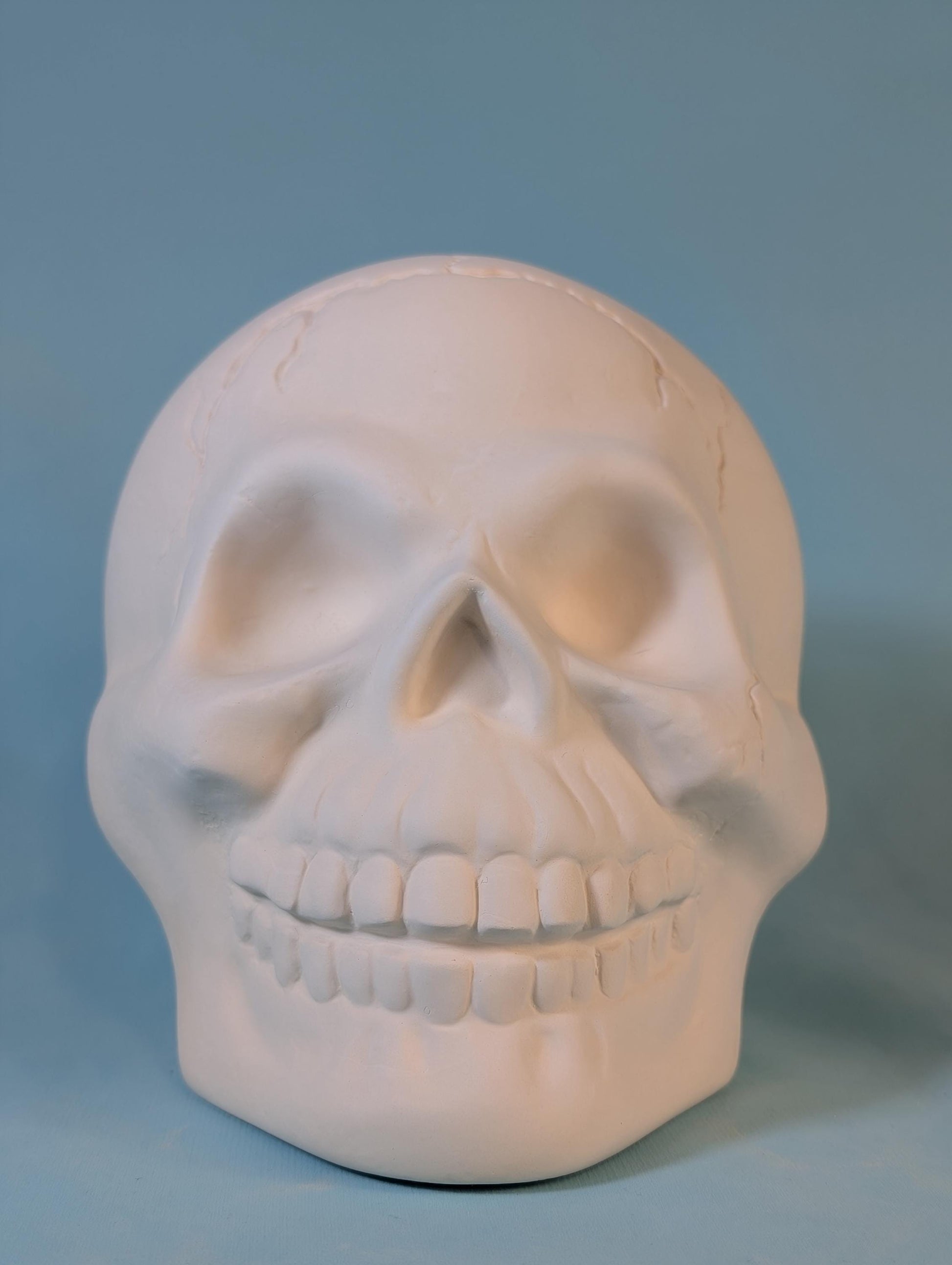 This big skull is really fun! He's got some wonderfully nice detail and, honestly... he kind of looks like a goofball! He might be mad, he might be cheeky, but whatever his mood, we know you'll give him some fantastic flair with your artistic touch this Halloween season.