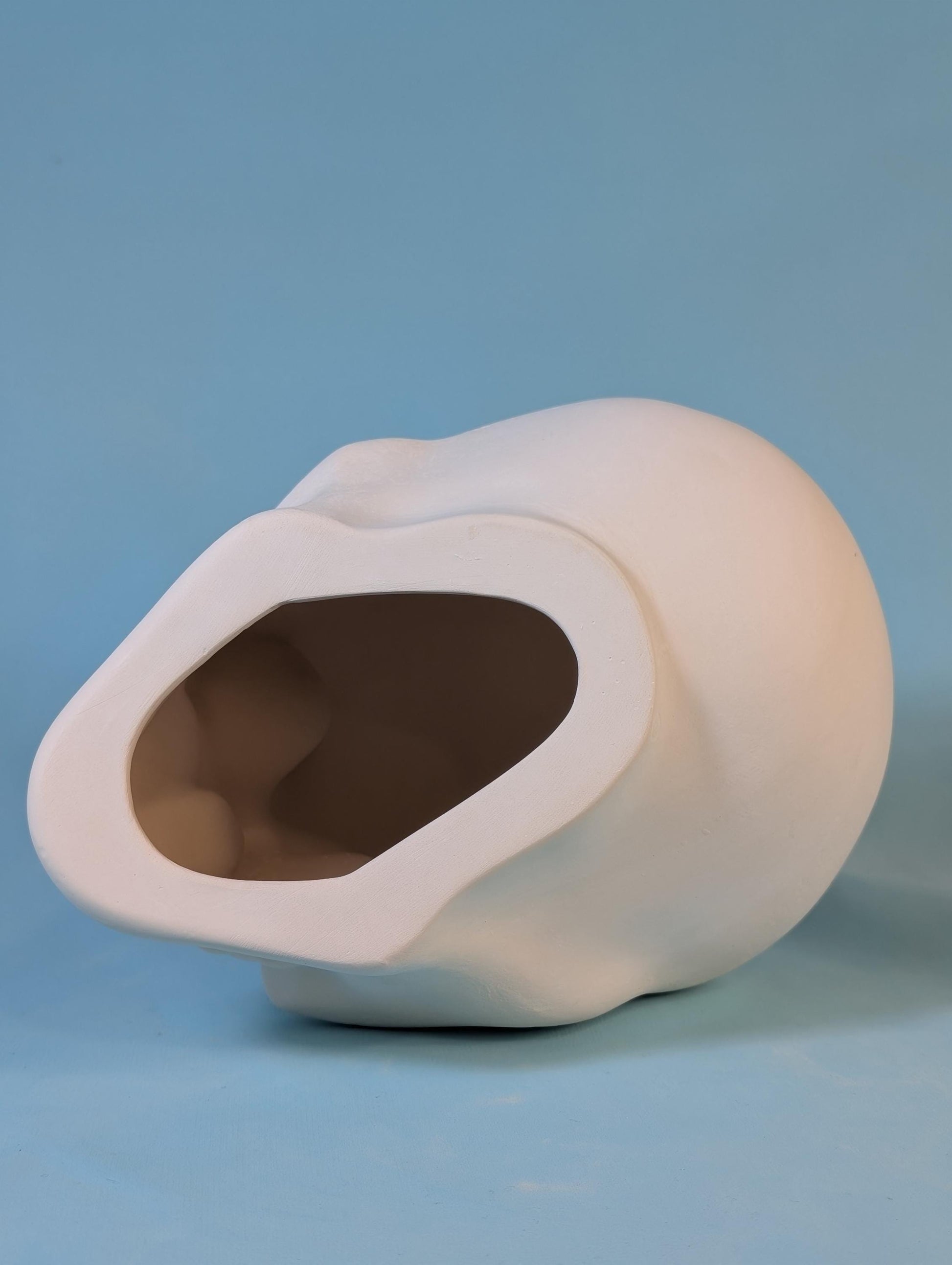 Oversized Ceramic Skull Decor: Unpainted Halloween Decoration, Whimsical Cartoon Design for Home