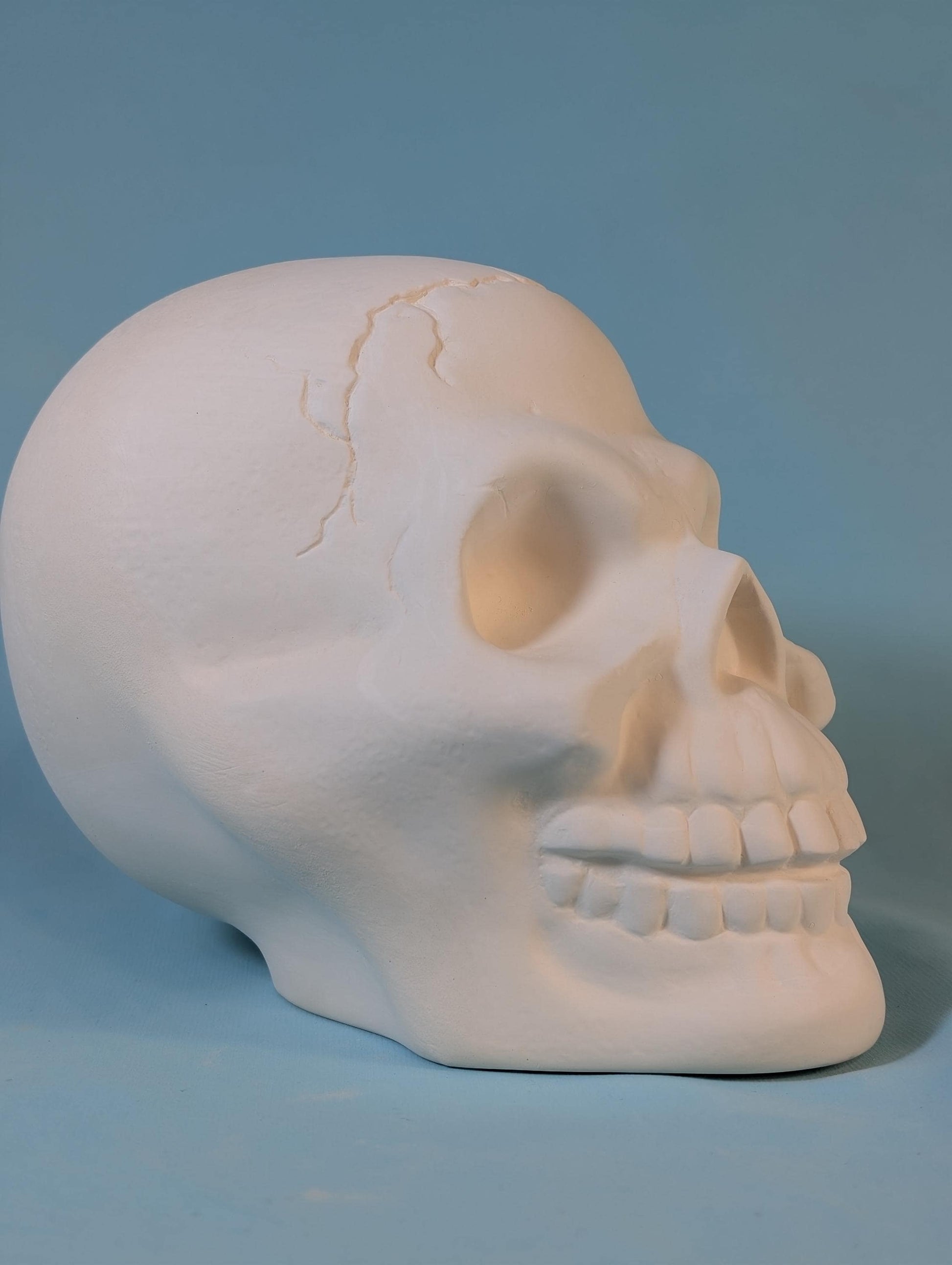 Crafted with care, this ceramic skull bisque is a perfect blank canvas. It's ready for you to bring out his unique personality using your favorite acrylic paints or glazes.