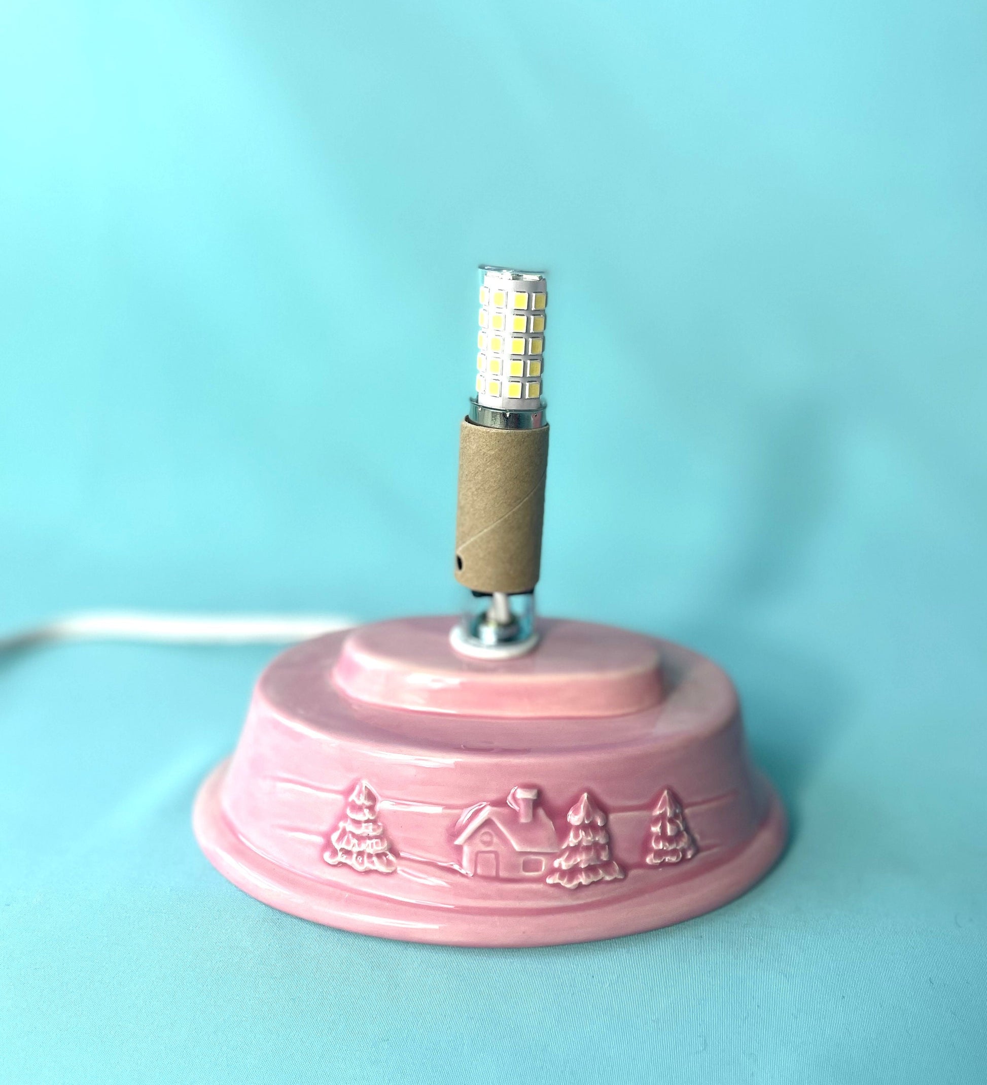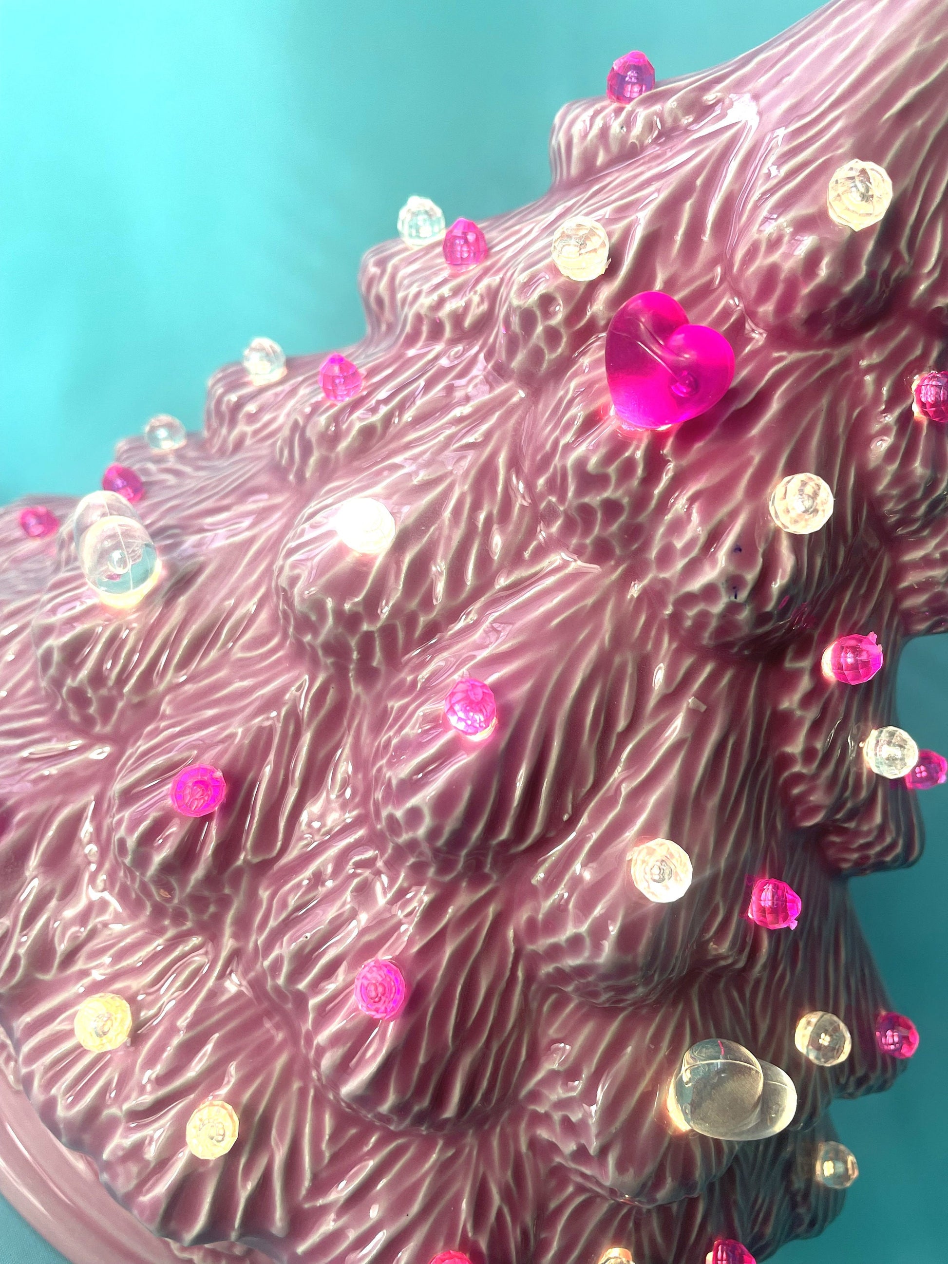 This listing is for a single ceramic tree glazed pink with pin lights.