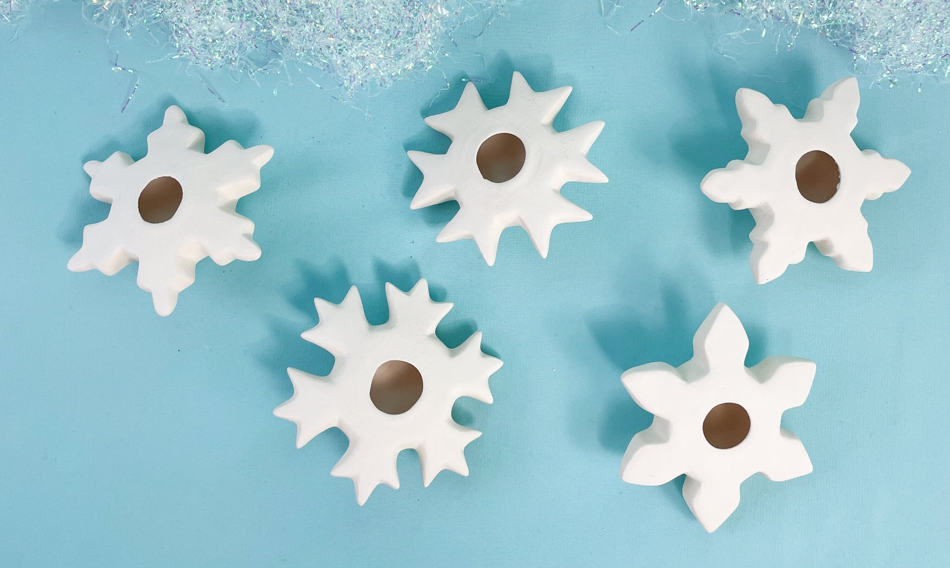 Ready To Paint | 5 Snowflake Ornaments | DIY Christmas Ornaments | Bisque Ceramic Snowflakes