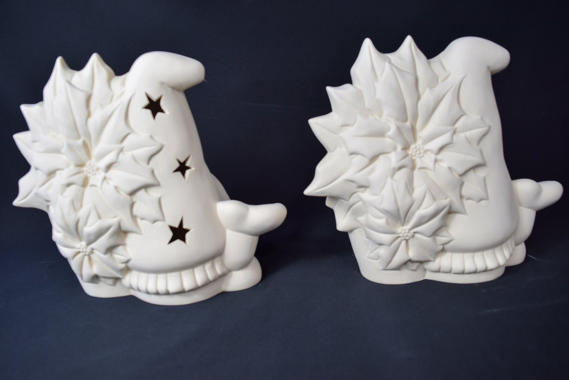 RESERVED for Lisa - DIY Poinsettia Gnome Tea Light Holder - Paint Your Own Bisque Ceramic Christmas Decoration Kit