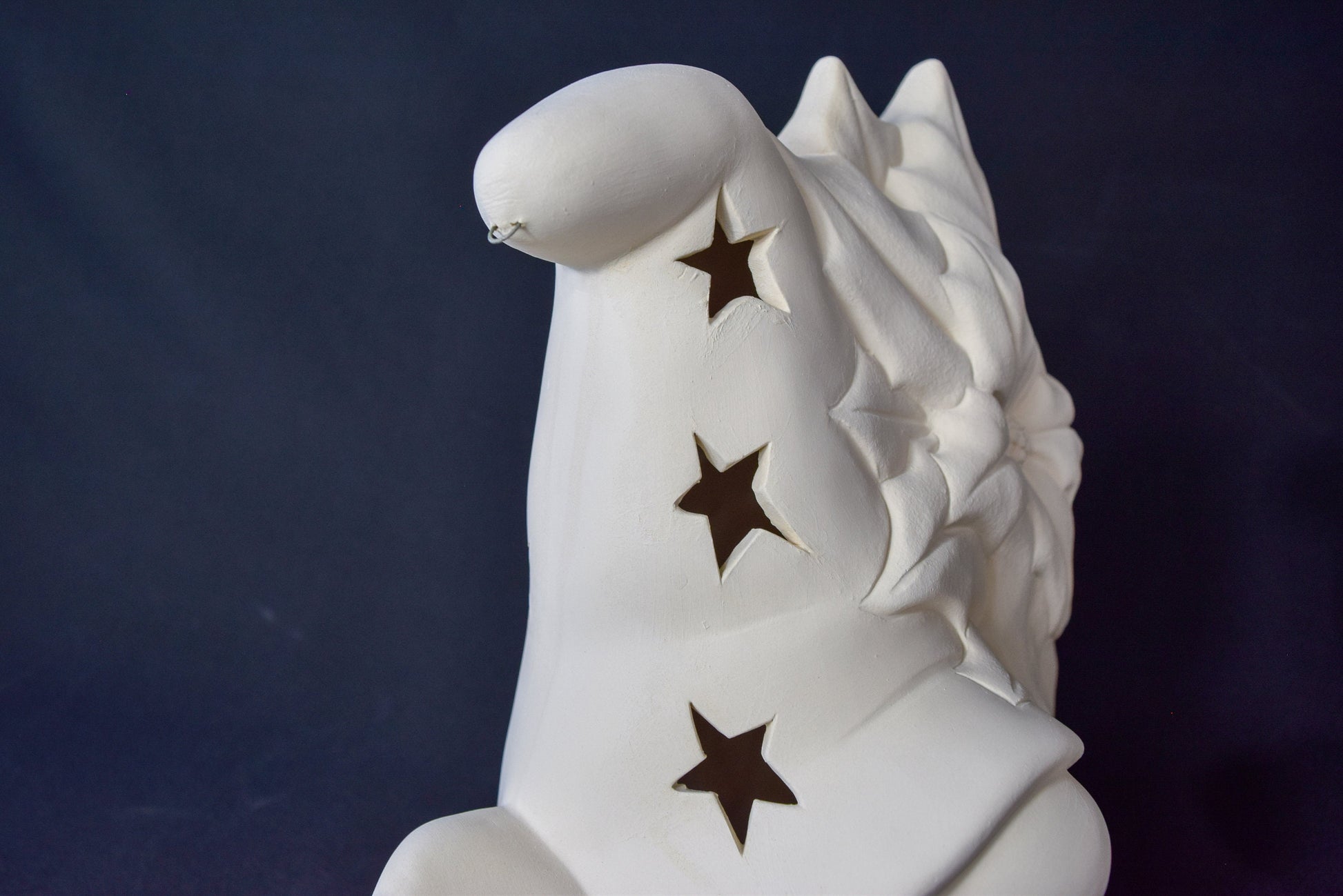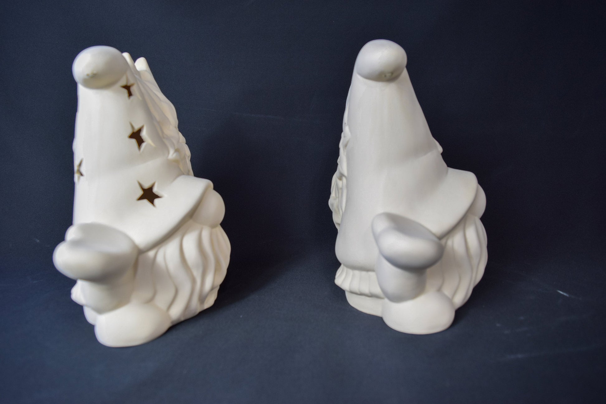 These little Christmas Gnome are so sweet, and ready to paint! They come equipped with little ornament hooks to hang your favorite little bulbs from. You also have the option of ordering one with star shaped cut outs. The Gnomes with the cutouts come with a lighting kit so you can use him as a night light!