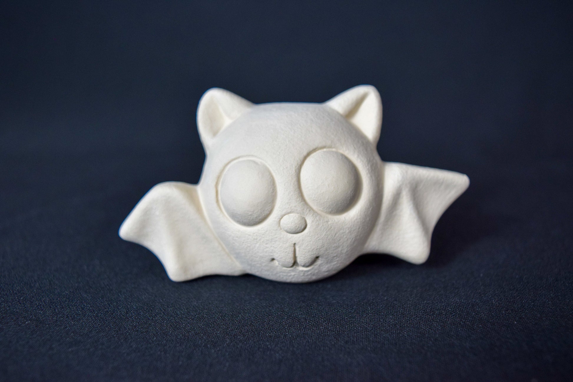 This cute little Halloween darling is ready for you to put your artistic touch on it! This is the samller version of our other bisque bat now available to you in our finished ceramic bisque for your next paint party, project for the kids, or just a fun thing to do to pass the time! These are the newest Halloween bats from the wonderful people at Clay Magic. He's got some wonderful detail and texture to him and he is super fun to paint, trust me!