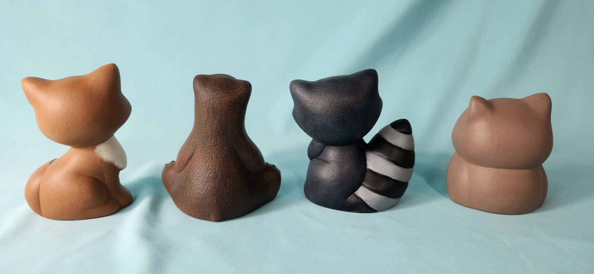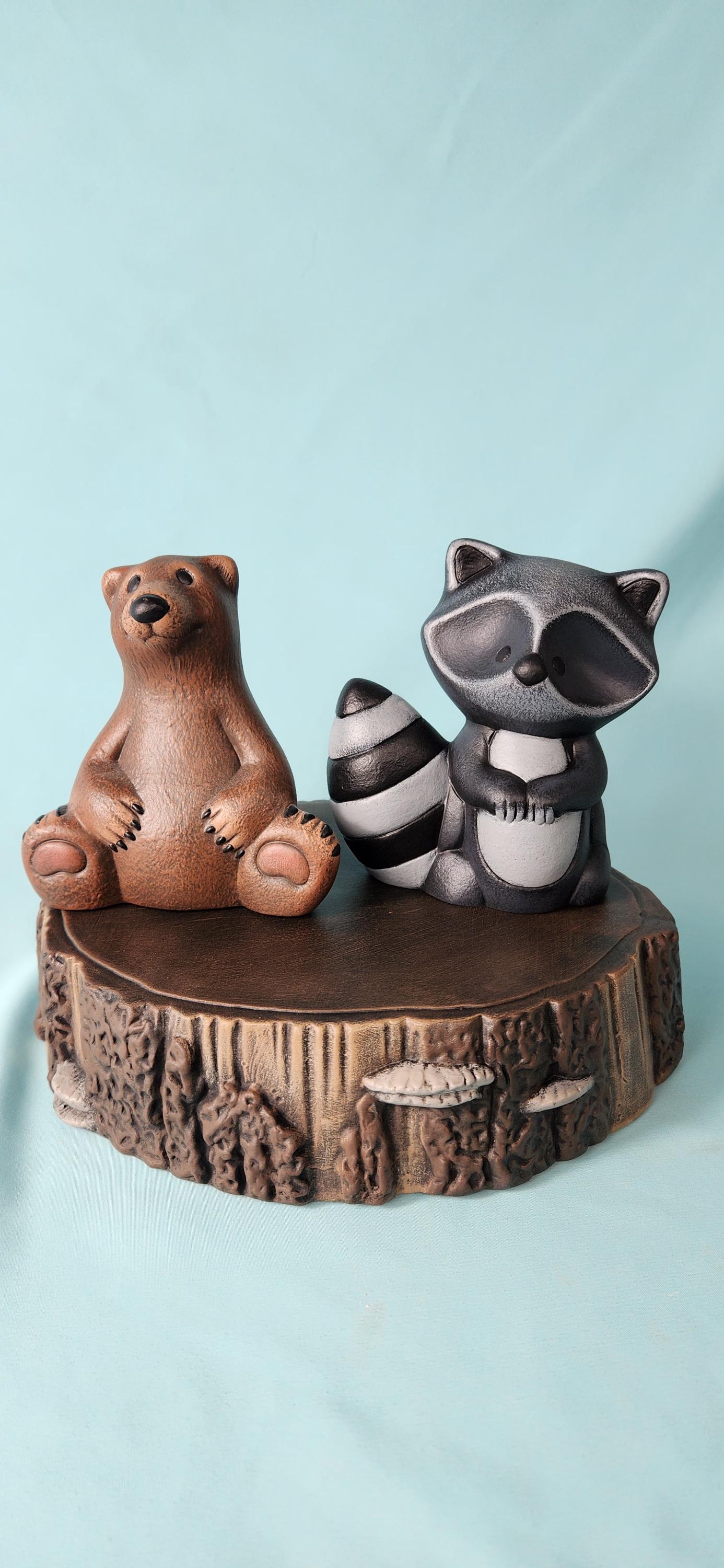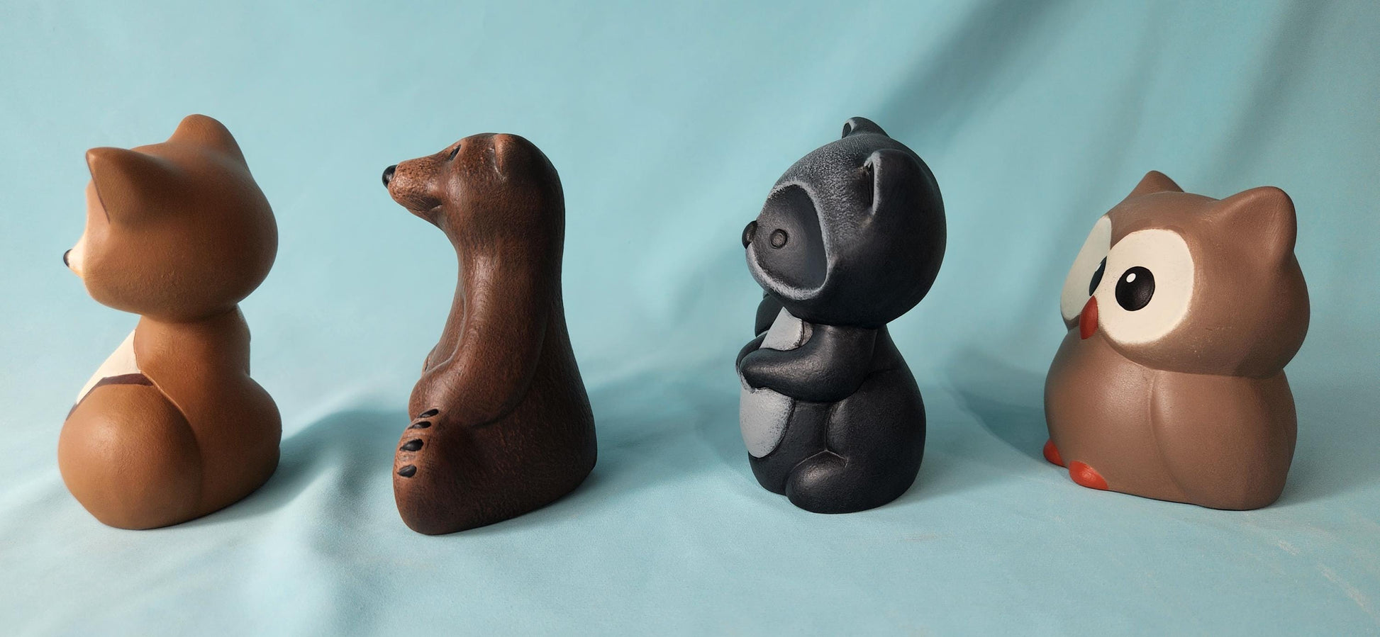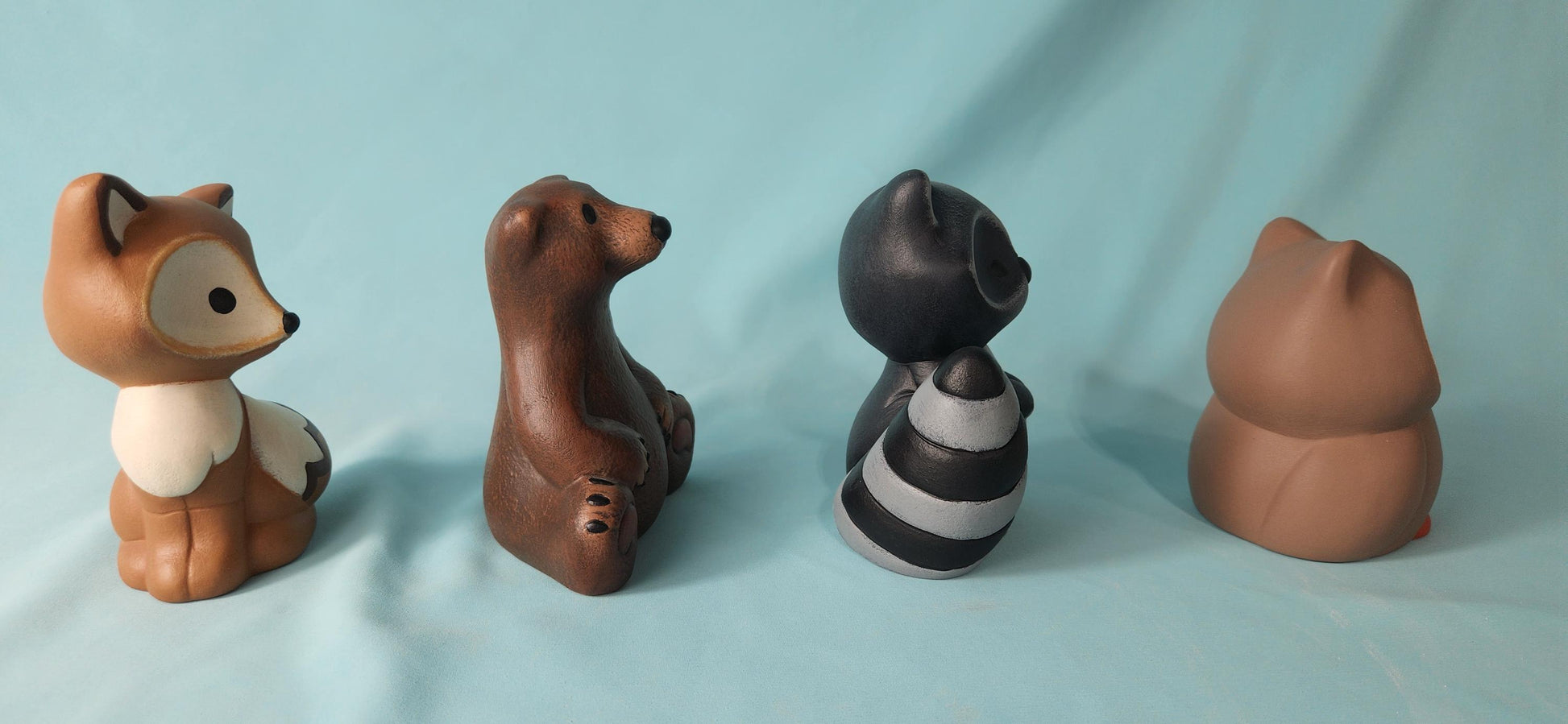 Ceramic Woodland Animal Set: Owl, Fox, Raccoon, Bear - Nursery Decor, Baby Shower Gift, Forest Creatures