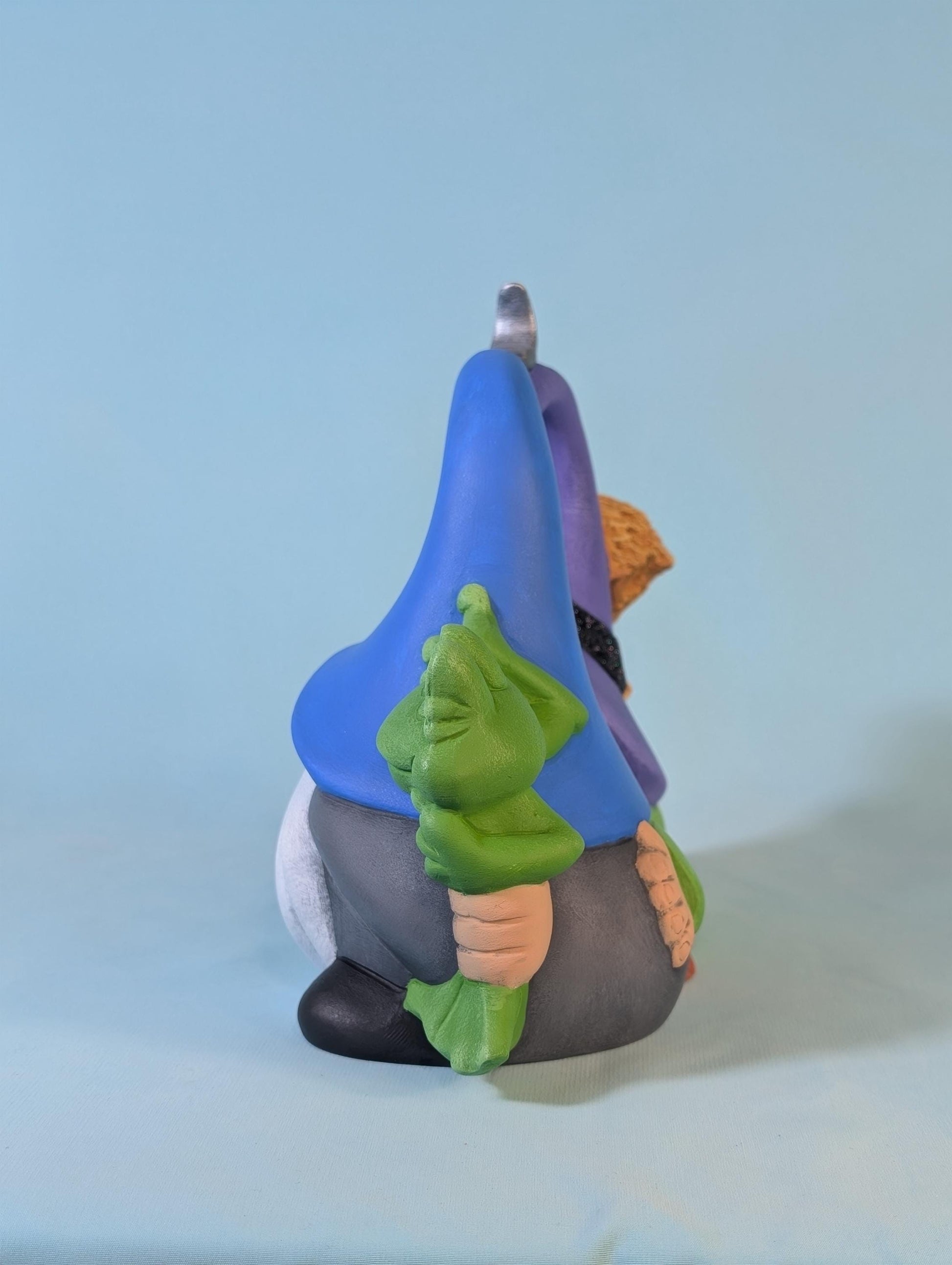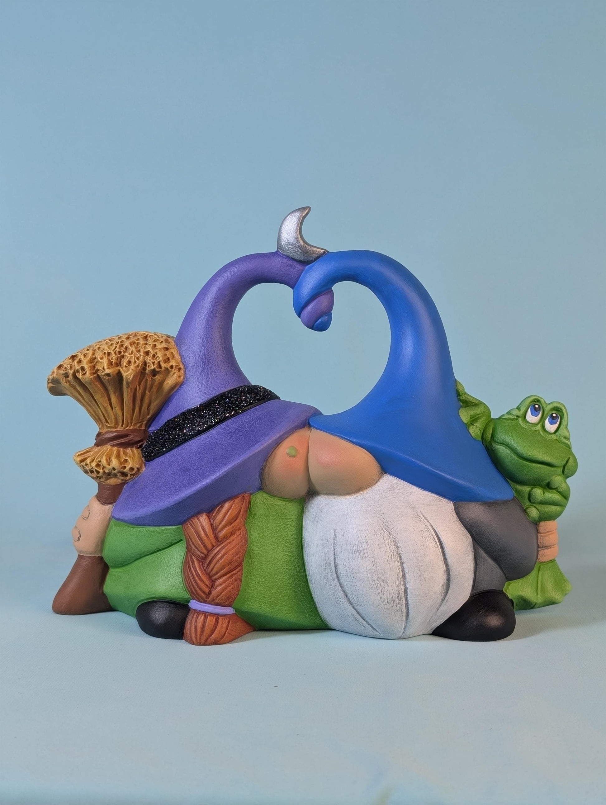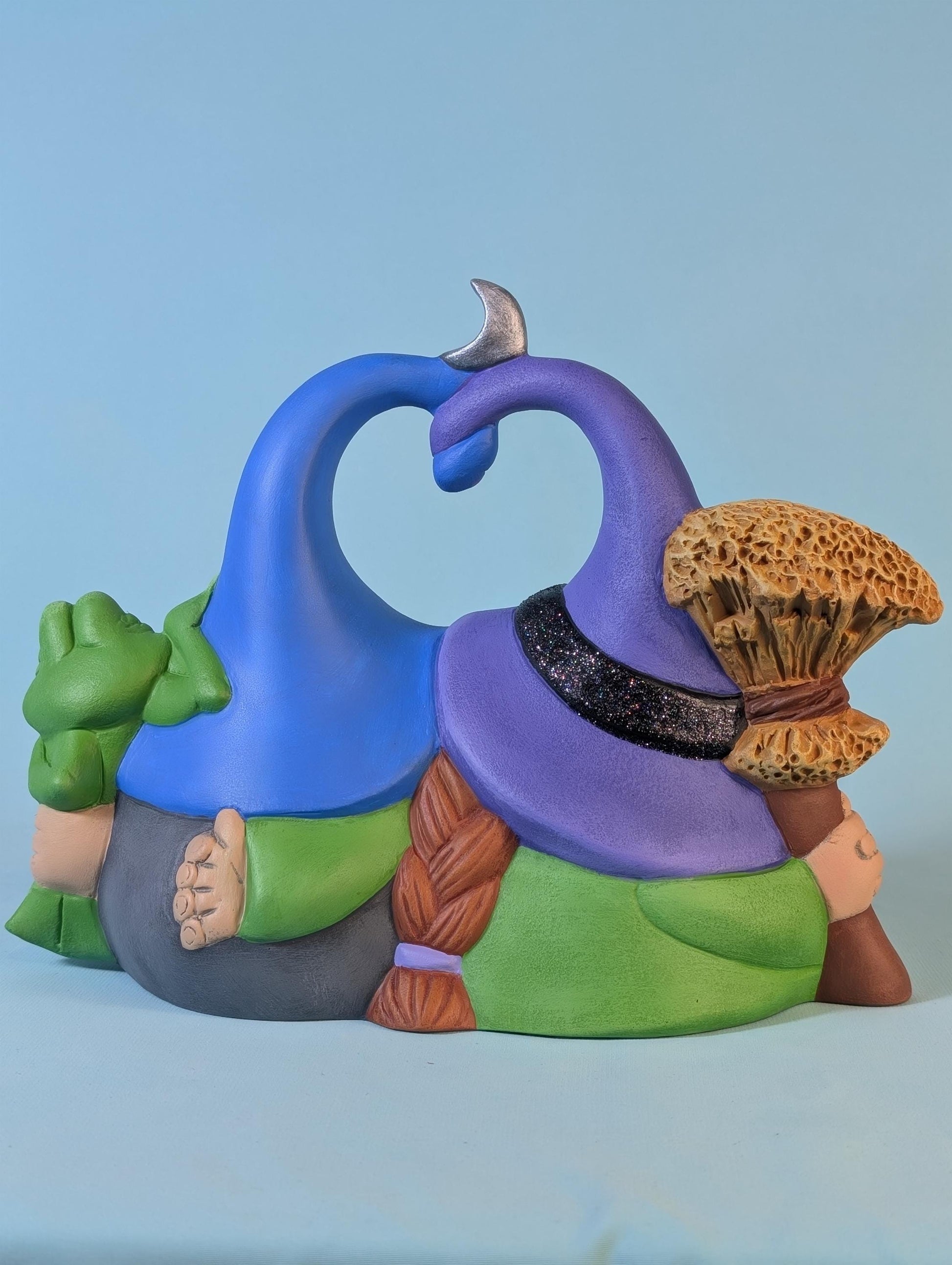 Adorable Couple Design: A sweet witch and wizard gnome holding hands.