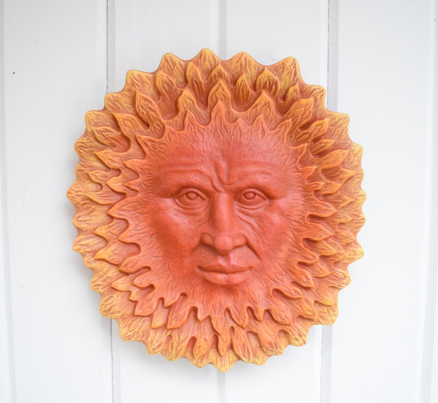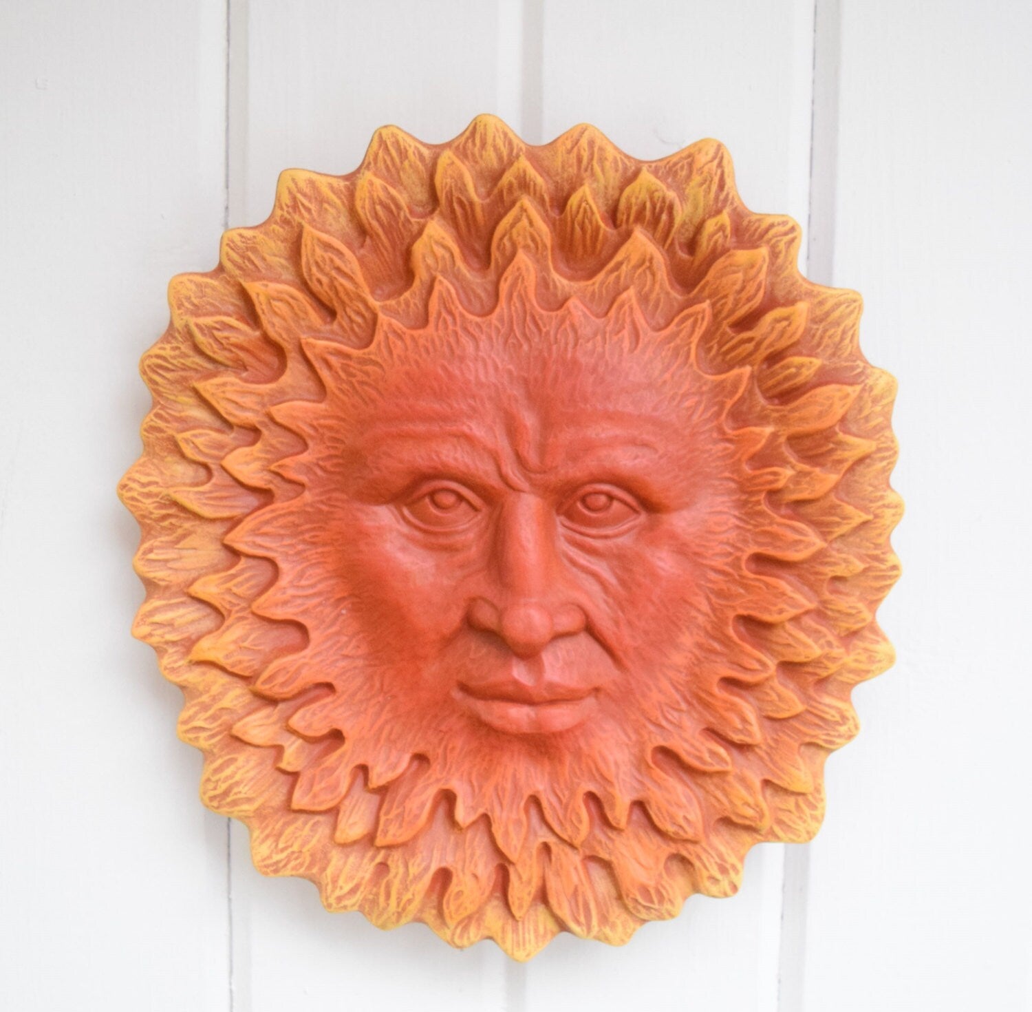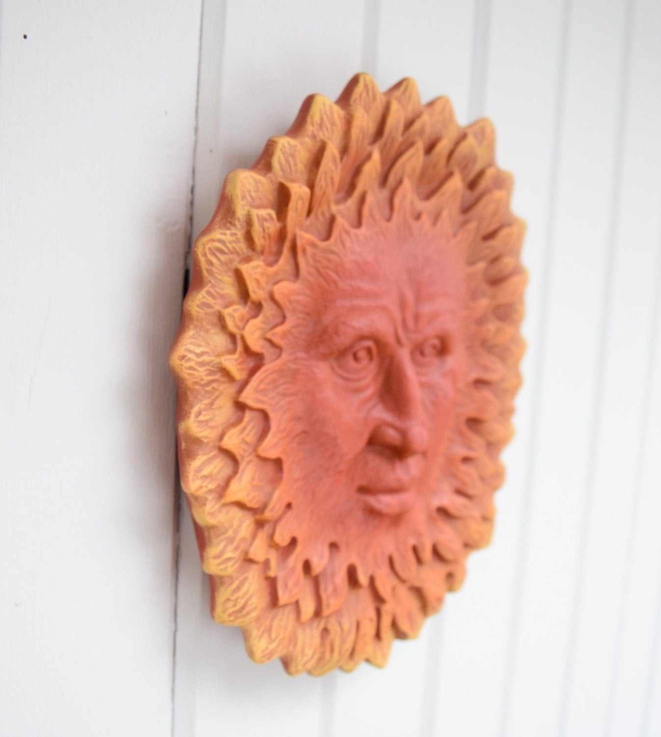 Sun Face Plaque | God of the Sun Fence Hanger | Ceramic Sun Wall Art | Yard Art | Father's Day Gift Idea | Zen Garden Fence Art