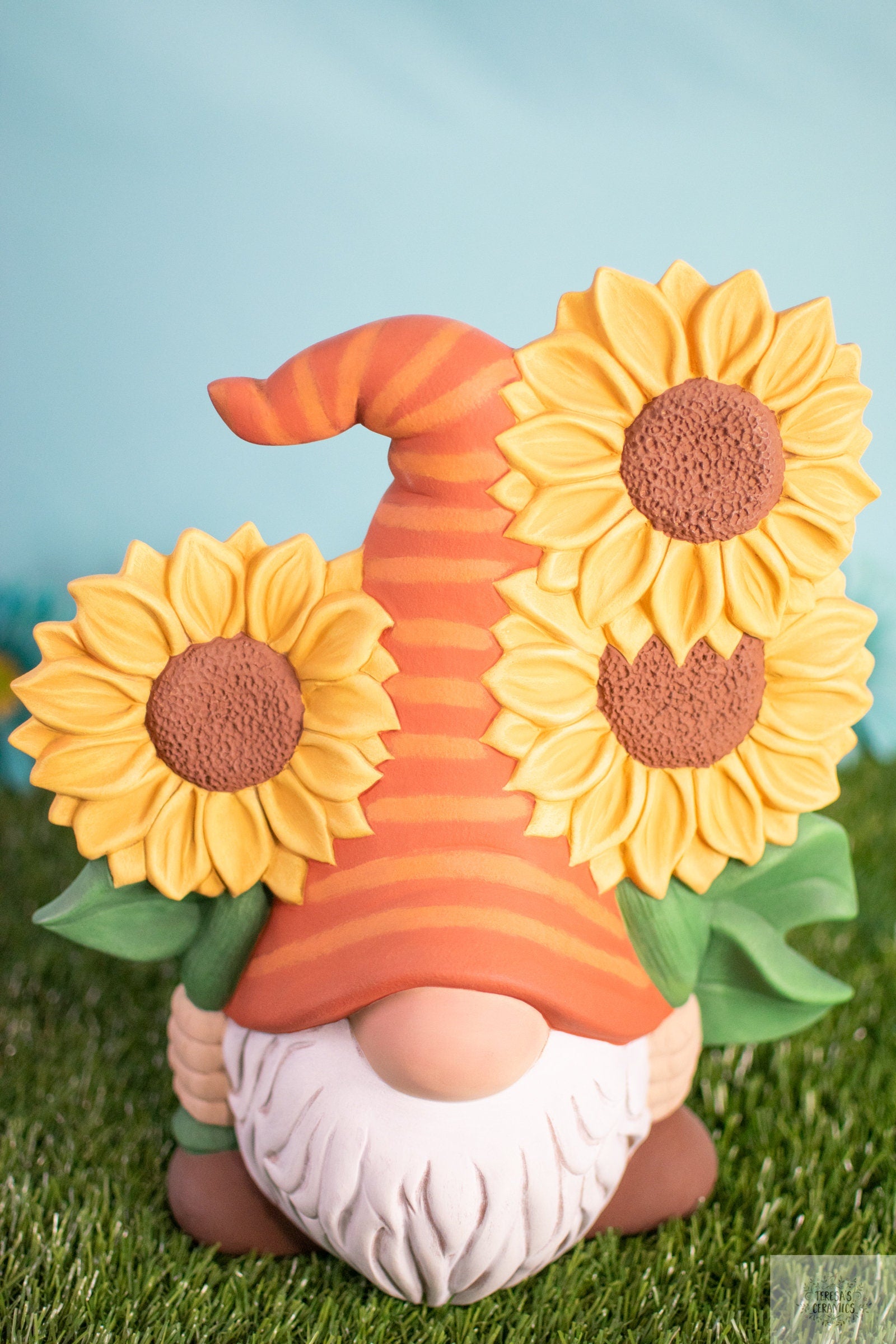 Sunny the sunflower gnome is ready to guard your garden! He keeps it safe from all of the critters and diggers who want to indulge in your sunflowers!