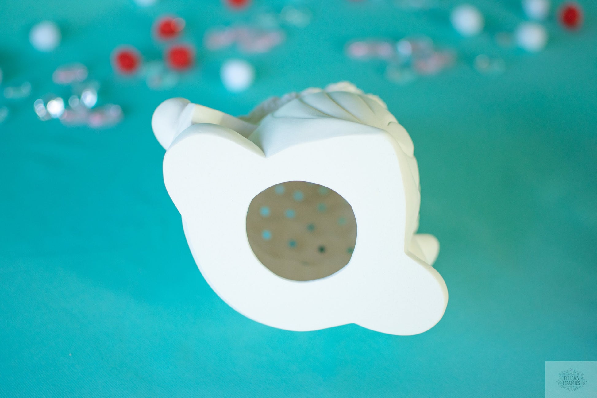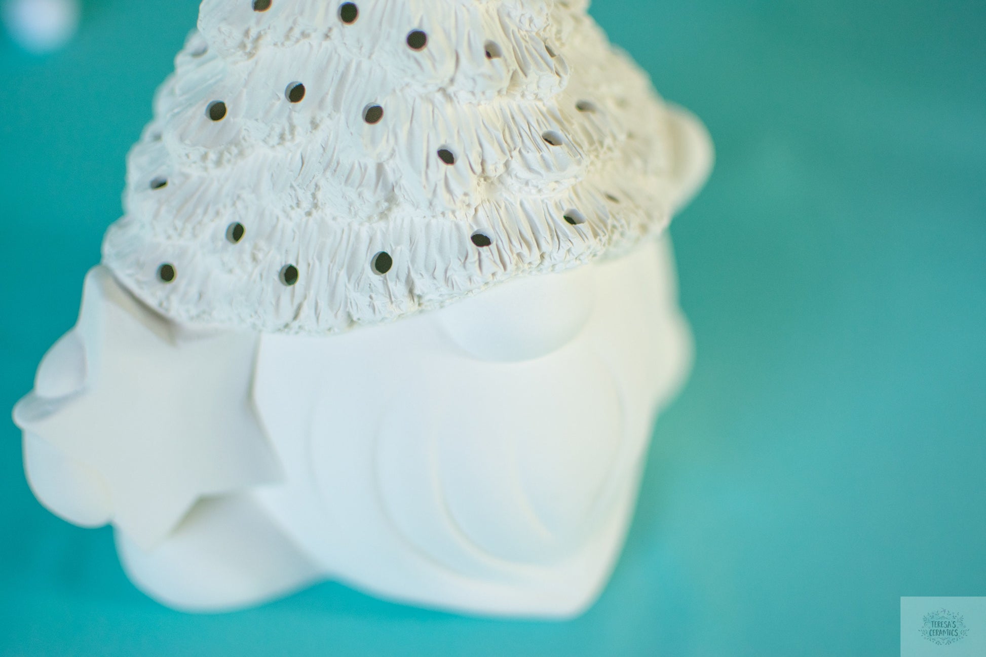 Handmade in my home studio, this Tannenbaum gnome is created with a ceramic mold. The ceramic slip is poured into the mold, dried, cleaned, holes are made for xmas lights and then the piece is fired in the kiln. Once fired the gnome is in bisque and ready to paint!