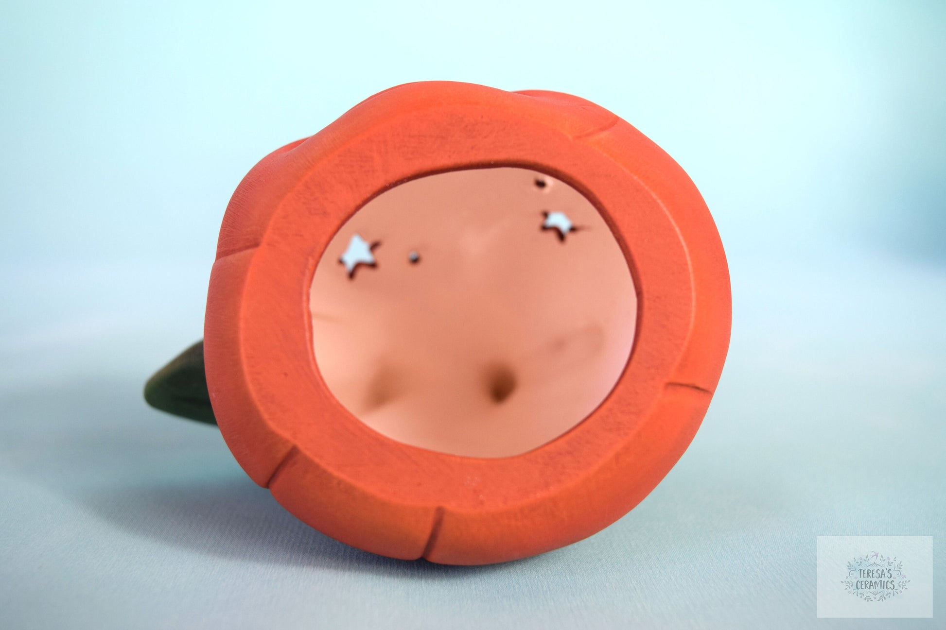 Handcrafted Ceramic Starry Pumpkin Tea Light Lantern - Fall Decor Night Light for Halloween & Autumn