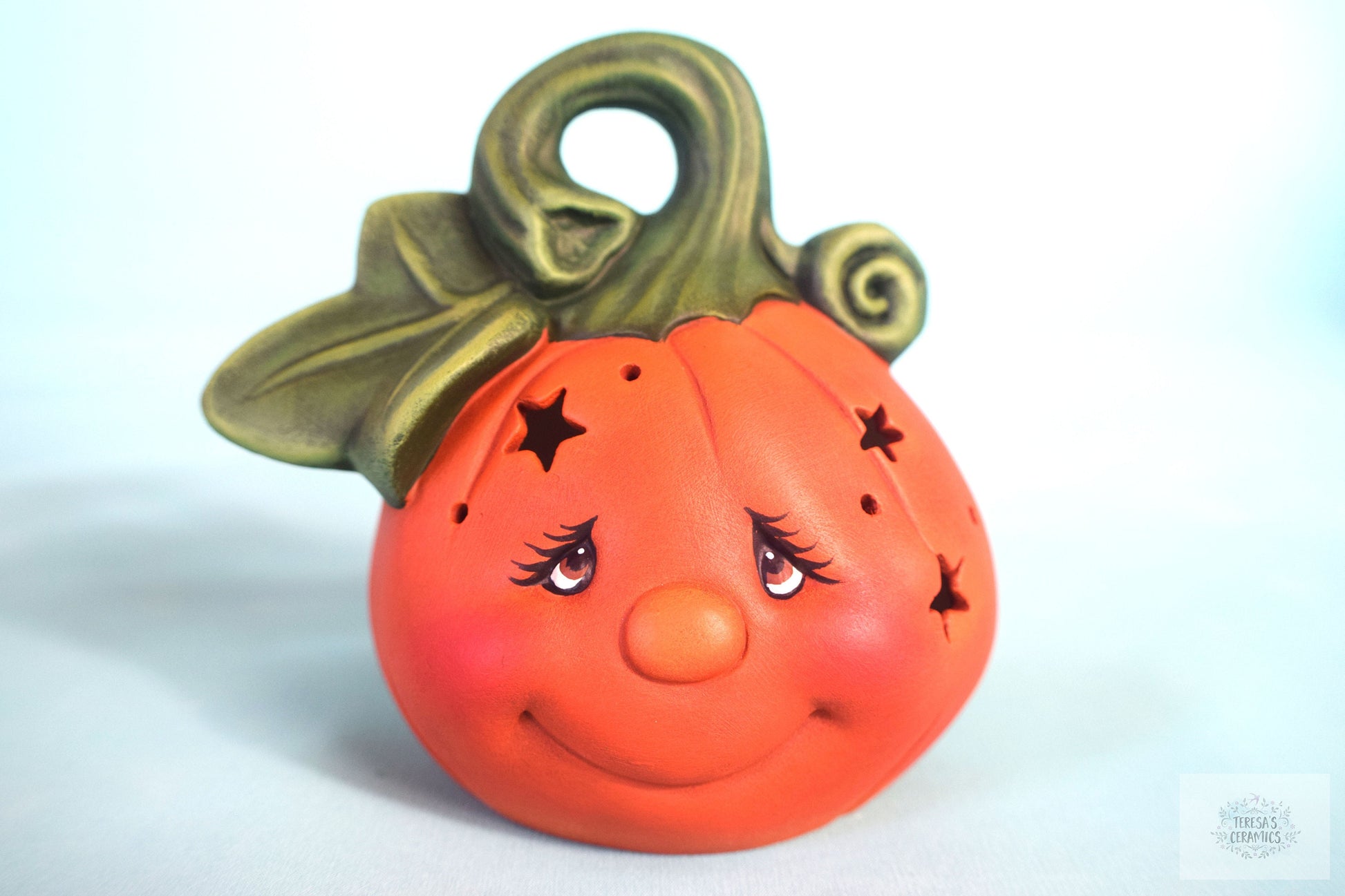 Bring the warmth of autumn to your home with this sweet Pumpkin Lantern! Smiling and happy, this unique ceramic piece is sure to set the perfect cozy mood for fall and Halloween nights.