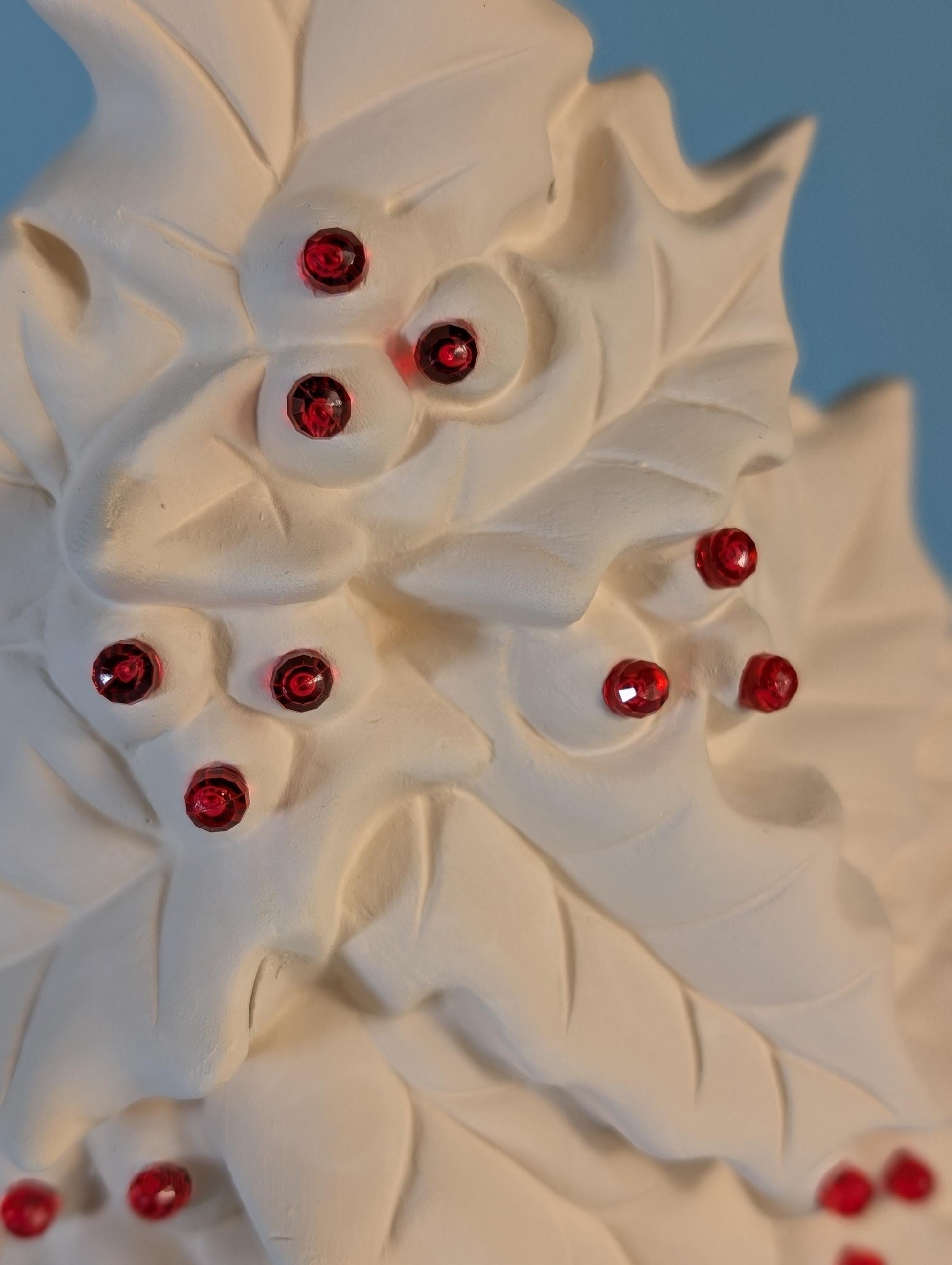 Berries are Punched: Small holes are placed in the detailed berry clusters, ready to accept small plastic lights.
