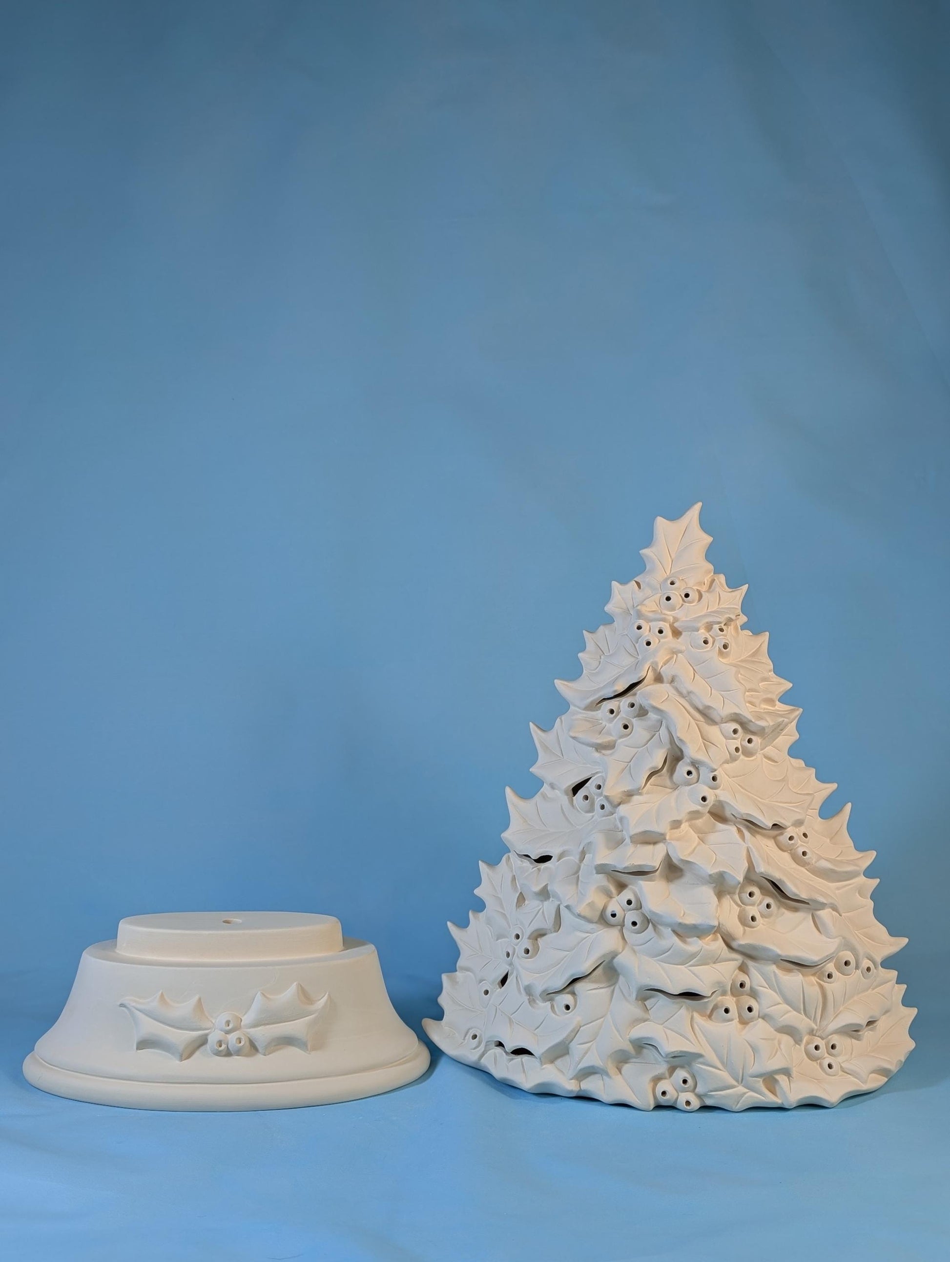 Unfinished Ceramic Holly Tree Bisque for DIY Holiday Crafts - 16.5 Inch Tall Clay Magic