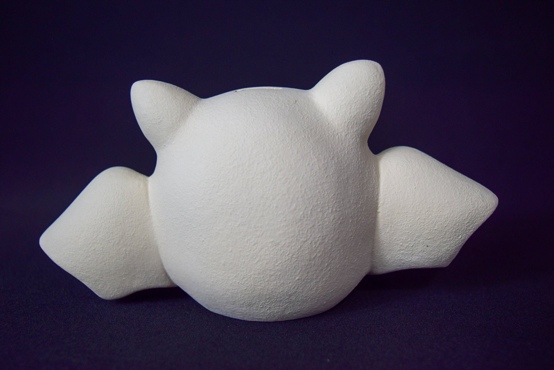 Imagine the fun of bringing this adorable bat to life with your own colors and designs. Whether you're planning a paint party, a creative project with the kids, or simply seeking a relaxing and enjoyable activity, this bat is the perfect canvas for your imagination. The detailed texture and charming features make it a joy to paint, and the slotted top is ready for a tuft of fuzz to elevate its cuteness to legendary levels!
